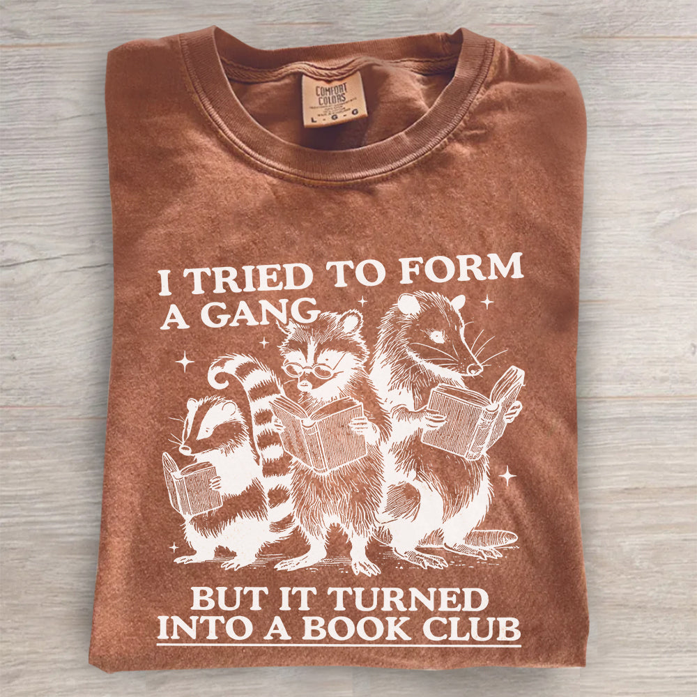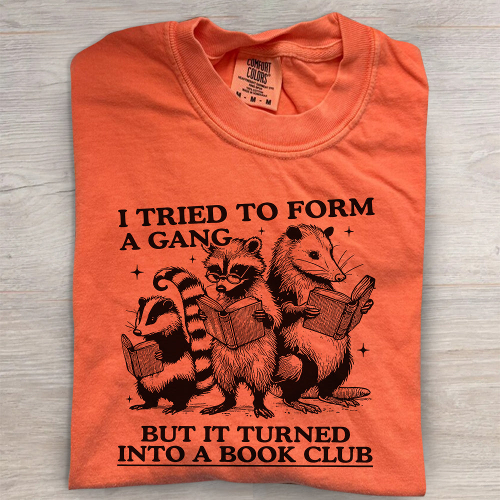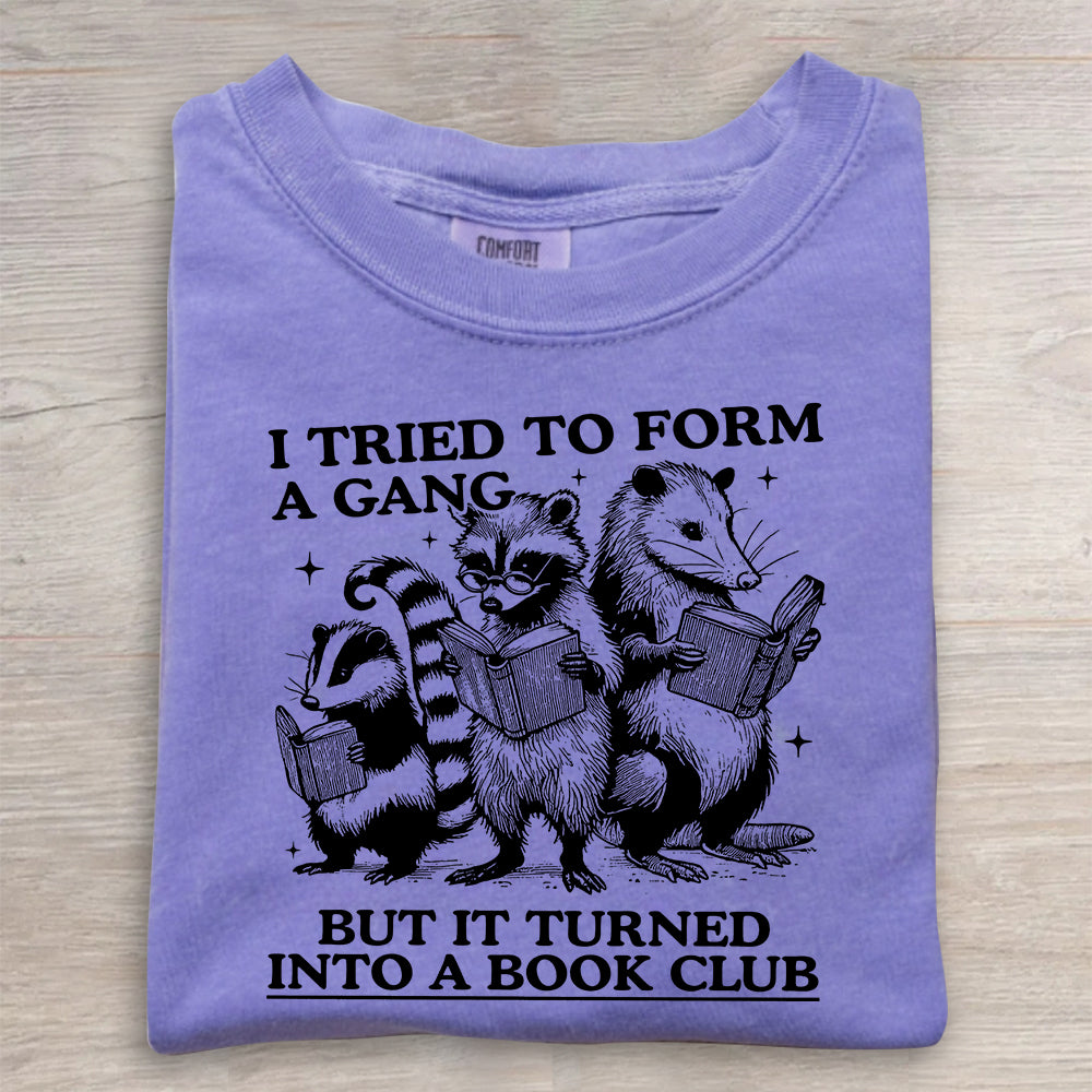 Celebrate your love for books with the Comfort Colors® Funny Reading Shirt featuring the witty phrase, "I Tried to Form A Gang But It Turned Into A Book Club."
